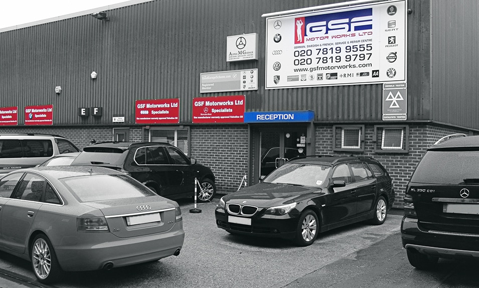 GSF Motor Works is one of the largest independent car servicing, mechanical and bodywork repair workshops in Central and South-West London, serving owners of many quality European car makers, such as Audi, BMW, Land Rover, Mercedes, Porsche, Volkswagen and others.