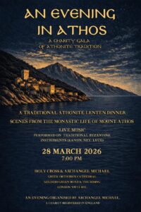 Η εκδήλωση αυτή προσκαλεί το κοινό του Λονδίνου να γνωρίσει ένα μικρό μέρος από την πνευματική και πολιτιστική παράδοση του Αγίου Όρους, ένα από τα αρχαιότερα ζωντανά κέντρα της ορθόδοξης μοναστικής ζωής.