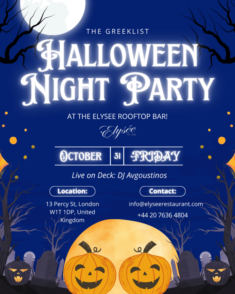 On Friday, October 31st, join us under the moonlight at the iconic Elysee Rooftop for a night filled with spooky vibes, great music, and the unique GreekList party magic. πΈοΈβ¨